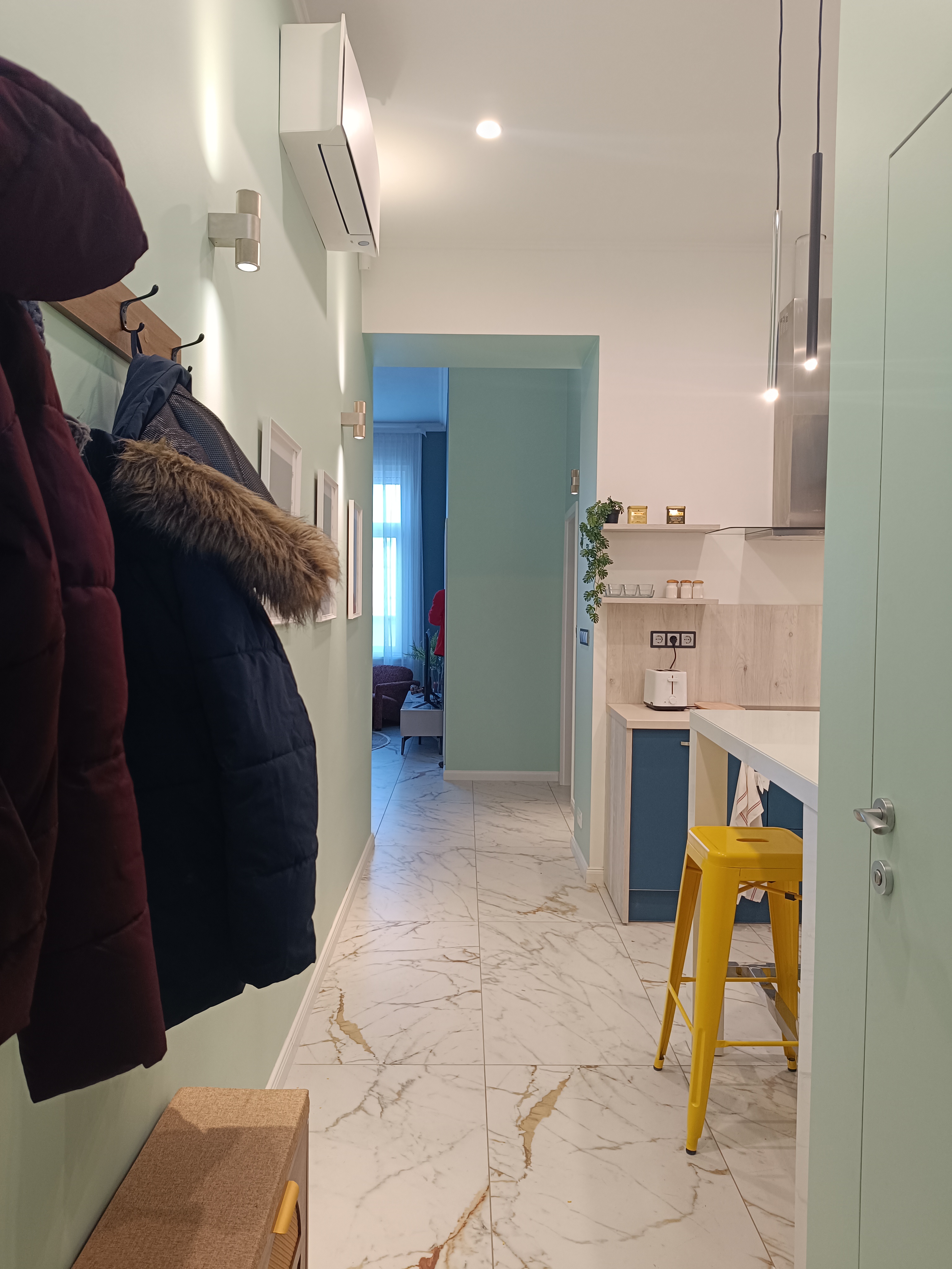 The apartment faces onto Képíró street, which is pedestrianised and quiet.